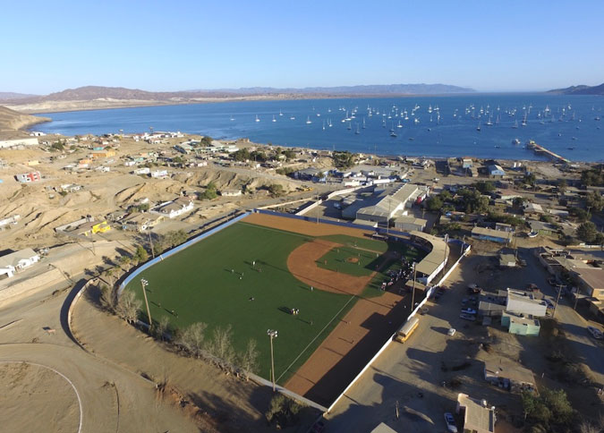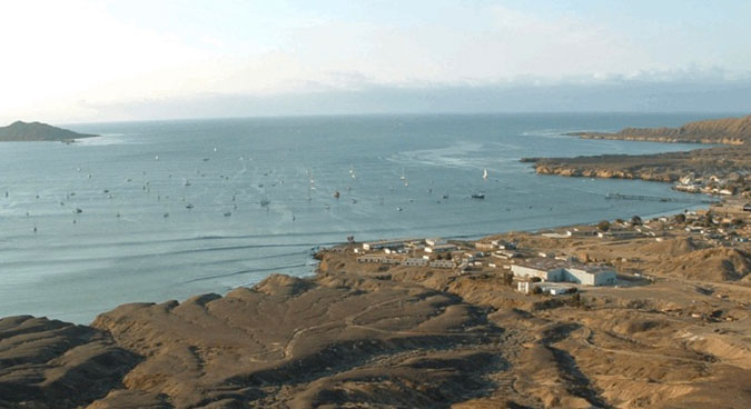 The Ha-Ha party site at Bahia Santa Maria is on the bluff on the left. The view is surreal.
