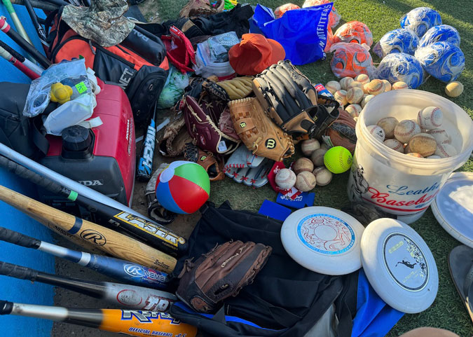 After the world-famous Cruisers and Kids high- speed Bazeball game we leave numerous thousands of dollars of gear behind. We let young girls pick first.