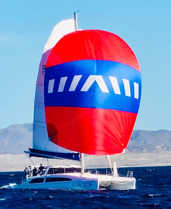 What are the typical sailing conditions in the Ha-Ha? Winds less than 20 knots from the northwest moving to the north late at night. Many boats go wing-on-wing with white sails.