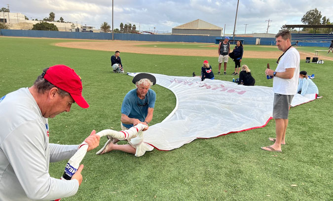 offers free sail repairs. One time he repaired 39 sails.